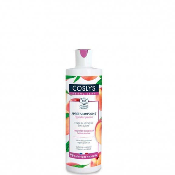 Acondicionador hipoalergénico, sin sulfatos y sin alérgenos para cabellos delicados con cuero cabelludo muy sensible. Hidrata y desenreda sin apelmazar y sin causar picor ni irritación. Puede aplicarse en el cuero cabelludo muy seco y descamado para aliviarlo. Ha sido formulado con aceite de avellana y girasol, extracto de melocotón y aloe vera, ingredientes calmantes y cicatrizantes.