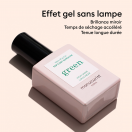 Fórmula vegana y hasta un 70% de origen vegetal. Aporta un acabado ultra-brillante tipo gel sin necesidad de lámpara. Reacciona con la luz natural para secarse más rápido y mejorar la duración del esmalte, ofreciendo hasta 7 días de brillo. Es 12-Free y respetuoso con las uñas, ideal si buscas un acabado profesional sin comprometer la salud de tus manos.